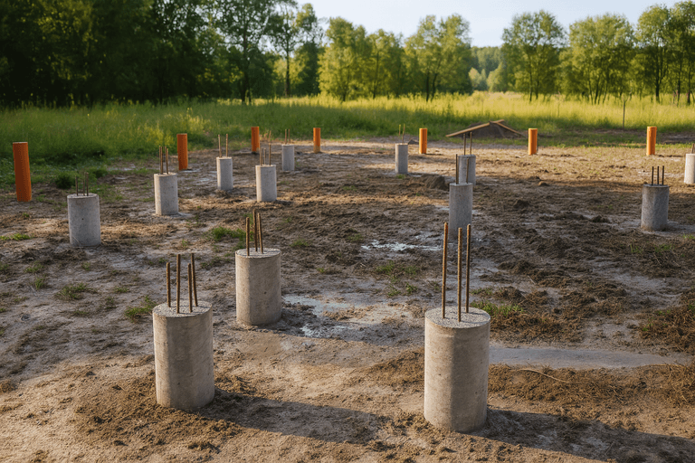 Технология фундамента ТИСЭ основана на бурении скважин с уширением основания и армировании с последующей заливкой бетоном. Такой фундамент считается выгодным решением для строительства домов различного масштаба, особенно в условиях слабонесущих или пучинистых грунтов. Мы предлагаем реализацию фундамента ТИСЭ под ключ с соблюдением всех норм СНиП и точной проработкой каждого этапа.